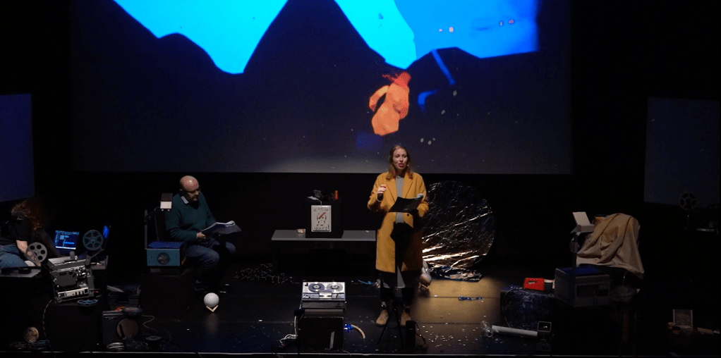 The show had its first ‘work in progress’ performance at An Lanntair on Friday 18 February 2022 as part of the Hebridean Dark Skies Festival, with support from Creative Scotland and Bòrd na Gàidhlig. sruth-mara is currently developing it towards a full production.